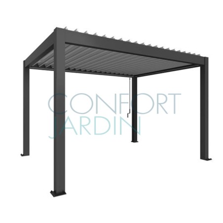 Pergola 4 x 3 m de chez BIOHORT. Lamelles de toit réglables jusqu'à 130°. Construction robuste réduisant le rayonnement thermique et le bruit. Disponible en 2 coloris. Lamelles de toit couleur argent métallique (autres coloris - nous contacter).