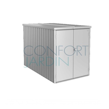MiniGarage de chez BIOHORT. 200 x 203 cm. Espace de rangement idéal pour 2 vélos, des outils et mobilier de jardin. Avec une hauteur de 145 cm il ne nécessite pas de demande d’autorisation*. Disponible en 2 coloris.