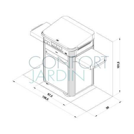 - Matériaux de Qualité : Plaque en fonte émaillée multicouche avec rebords anti-projection et goulotte d’évacuation, montée sur un châssis en inox résistant à la corrosion.