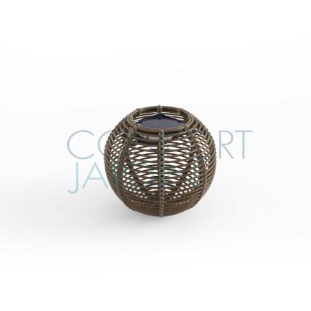 La Lampe Paillote Sphere M de chez Maiori. Lampe solaire d'extérieur avec fibre synthétique PE résistante. Ø38 cm. Disponible en version à poser ou suspendue. Dotée d'un module solaire haute conversion. Jusqu'à 5 heures d'éclairage après une pleine charge. Puissance de 100 lumens.