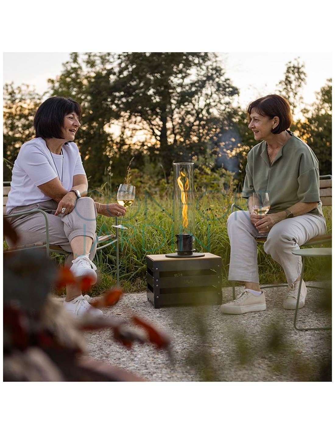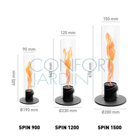 Le cœur de l'innovation du SPIN 900 réside dans son système rotatif breveté qui transforme la flamme en un fascinant tourbillon de feu. Grâce à une rotation ingénieuse autour de son axe vertical, le SPIN crée un effet visuel spectaculaire : les flammes s'étirent et dansent en spirale hypnotique, montant jusqu'à 50 cm de hauteur. Ce phénomène, aussi captivant que relaxant, devient instantanément le point focal de toute réunion en plein air.