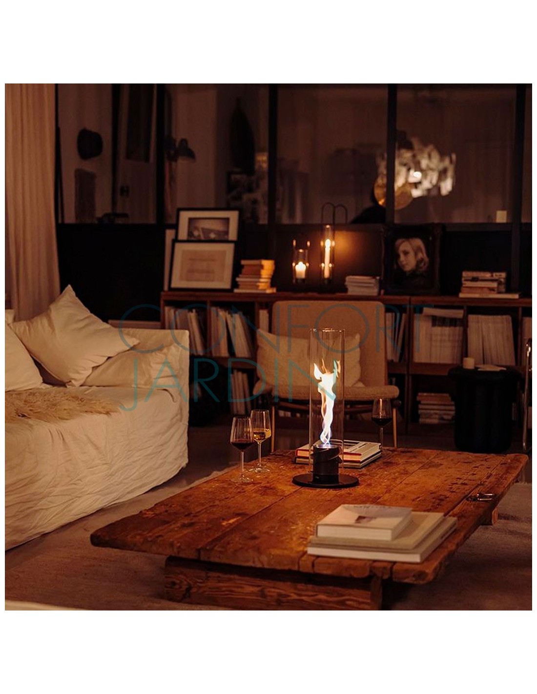 La conception du SPIN 900 n'est pas seulement esthétique, mais également empreinte d'une réflexion approfondie sur la sécurité et la fonctionnalité. Le réservoir de bioéthanol de 1 litre est facilement accessible et sécurisé, permettant jusqu'à 4 heures de flammes continues. L'allumage et l'extinction s'effectuent en toute simplicité grâce à une baguette d'allumage et un éteignoir inclus, tandis que le régulateur intégré permet d'ajuster la hauteur des flammes selon l'ambiance désirée.