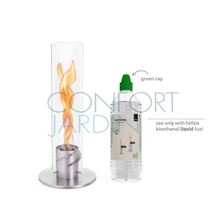 Feu de table Spin 900 couleur argent de la marque Höfats. Ø 9 cm. Une lumière innovante avec un tourbillon de flammes en rotation pour l'intérieur et l'extérieur. Sans fumée ni suie avec le bioéthanol liquide Höfats (vendu séparément). Jusqu'à 4 h d'utilisation continue avec un réservoir d'un litre.