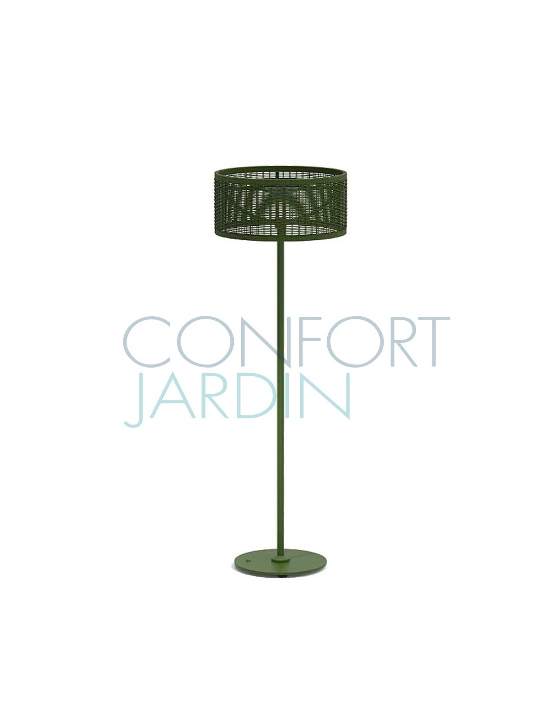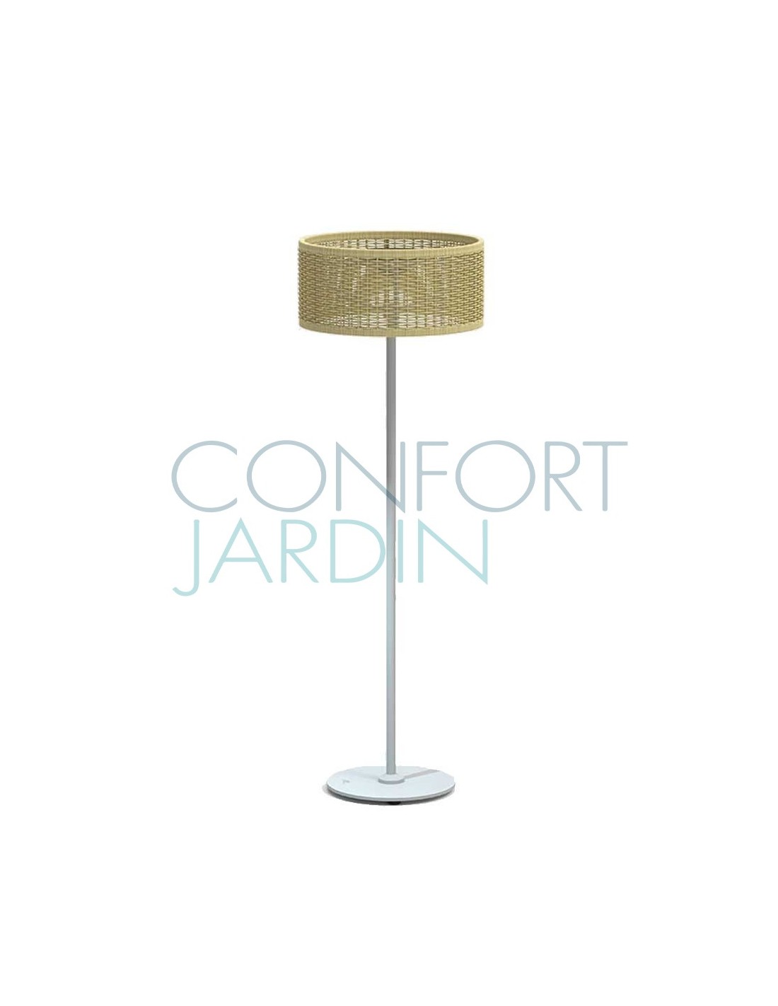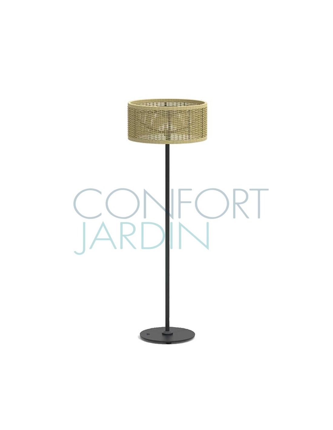 La lampe solaire Padere Tresse de chez Maiori. Lampe solaire de jardin sur pied. Intérieur / extérieur. Doté d'un module solaire hybride rechargeable. Jusqu'à 13 heures d’éclairage après une pleine charge. La puissance de 300 lumens. Abat-jour en osier synthétique.