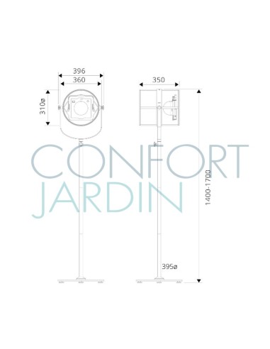 - Structure en aluminium recyclable, peinture poudre cuite au four.