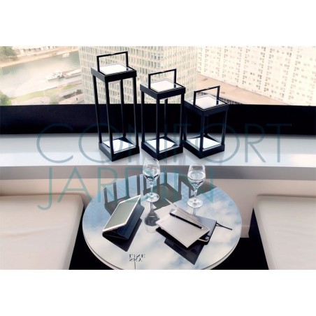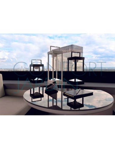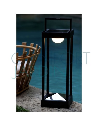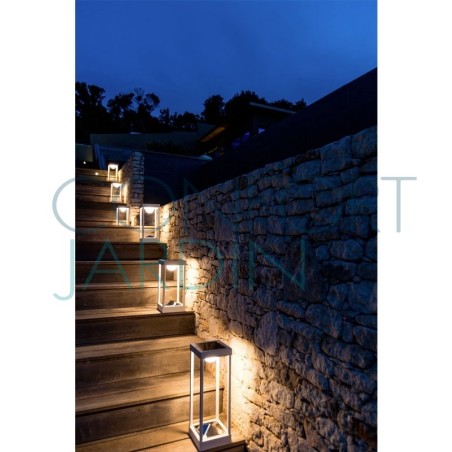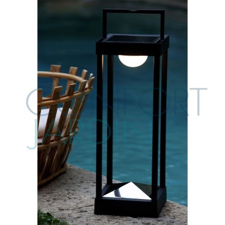 La lampe solaire Parc taille M de chez Maiori. Lampe solaire de jardin. Intérieur / extérieur. Doté d'un module solaire haute conversion de 10 cm. Pyramide réfléchissante située à la base. Jusqu'à 5 heures d’éclairage après une pleine charge. Puissance de 300 lumens.