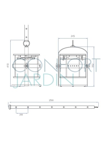 - Structure en aluminium recyclable, peinture poudre cuite au four.