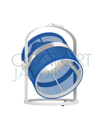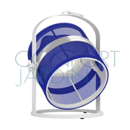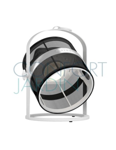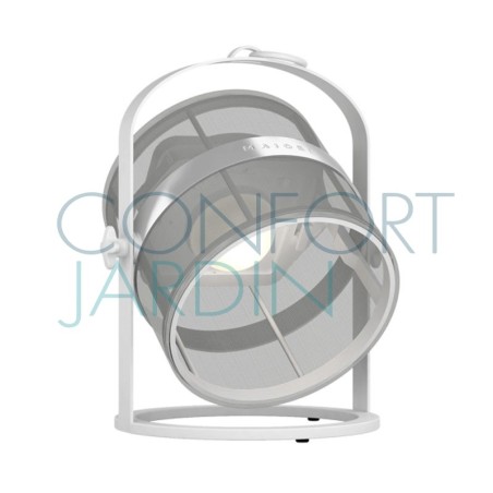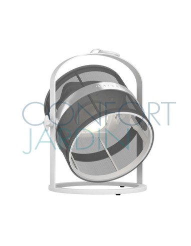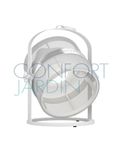 Lampe solaire Petite, hybride et connectée de chez Maiori. Nomade et modulable. Intérieur / extérieur, Habille les espaces où elle se trouve, posée ou suspendue. Crée une ambiance tamisée grâce à sa lumière douce et naturelle. Structure ultra-légère blanche.