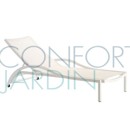 Avec ses lignes fluides et modernes, le bain de soleil ''Première'' allie parfaitement élégance et confort. Il associe une structure en aluminium laqué à de la toile Batyline, souple et résistante. Le dossier réglable (5 positions) s'adapte à votre activité (lecture, sieste...). La souplesse de la toile Batyline et la grande surface de repos (204 cm x 76 cm) vous assurent un confort optimal. Léger et muni de roulettes, ce bain de soleil se déplace au gré de vos envies et besoins. Empilable, il se range facilement. Un sentiment de bien-être et de liberté tout au long de l'été sur votre balcon ou dans votre jardin...