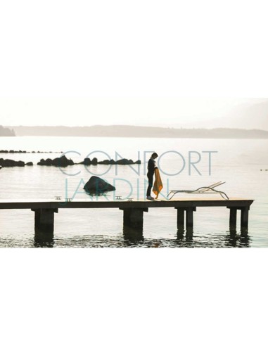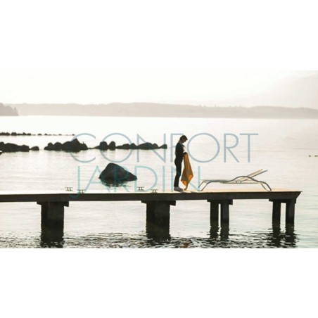Le bain de soleil reprend les codes esthétiques de la gamme Marumi. Dans sa version initiale, il intègre une tablette particulièrement utile pour poser un livre ou une paire de lunettes de soleil ainsi qu’un accoudoir. Il peut également être proposé sans accoudoir et sans tablette tout en sobriété et élégance.