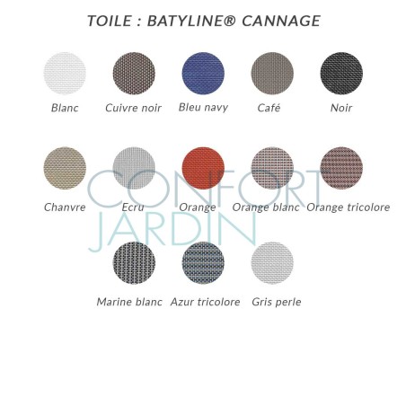 Structure en acier thermo-laqué finition semi-gloss (brillante lisse) - Assise en cannage Batyline® imputrescible, traité anti-UV (fils polyester gainés 100% PVC), facile d'entretien