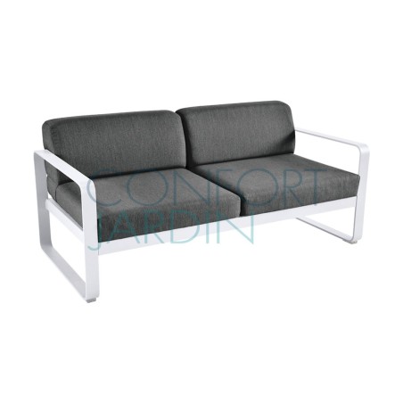 Canapé droit 2 places BELLEVIE couleur gris graphite de la marque Fermob. Structure en aluminium laqué - Coussins : revêtement en tissu acrylique fil teint masse, amovibles et déhoussables. Disponible en 23 coloris de structure.