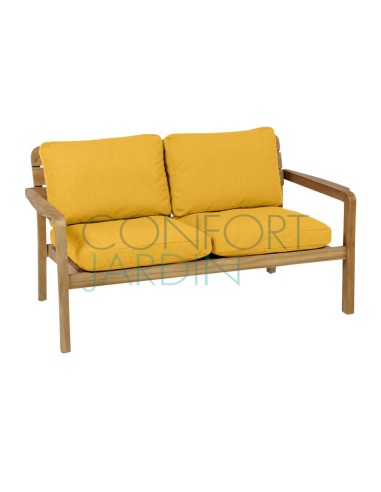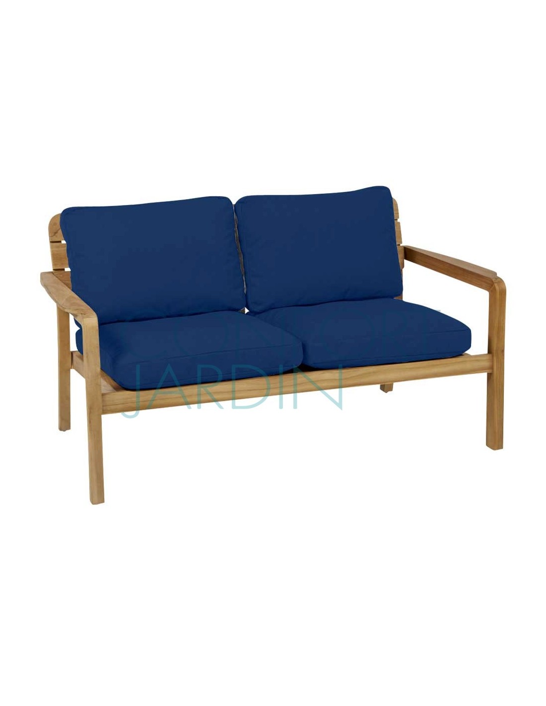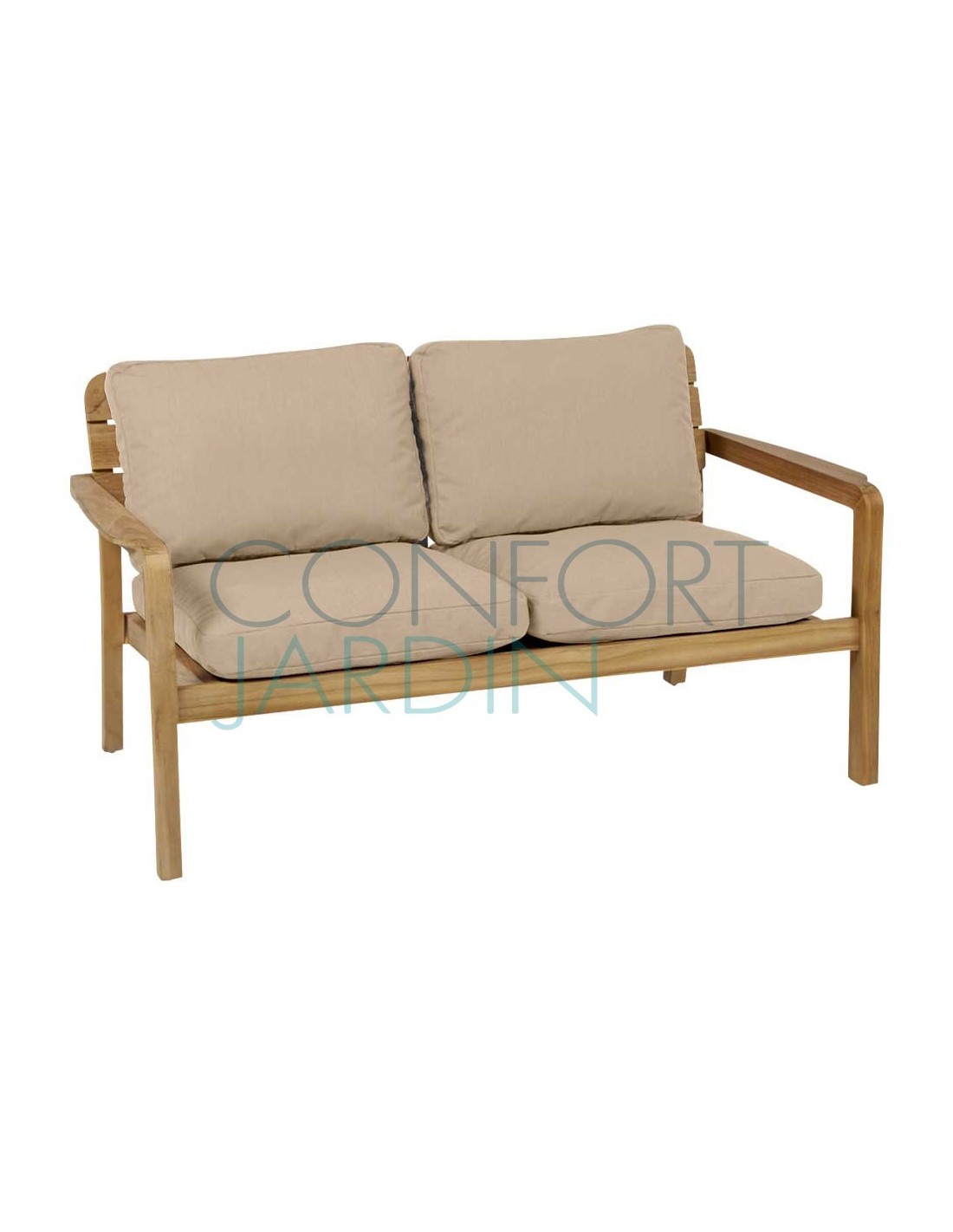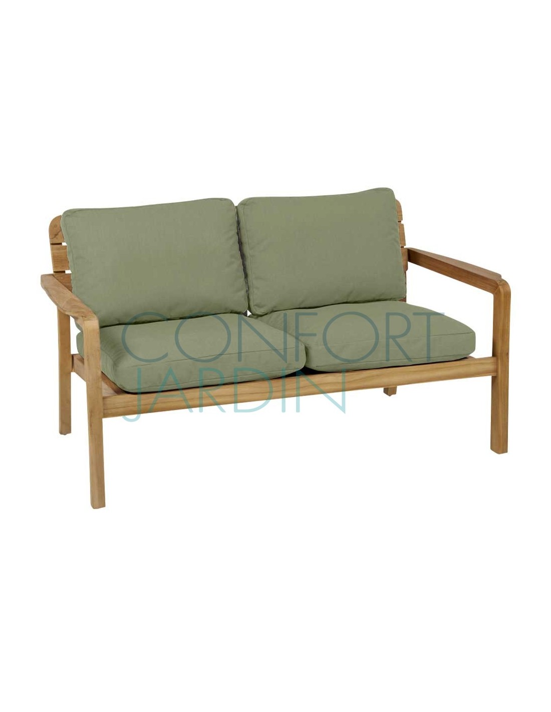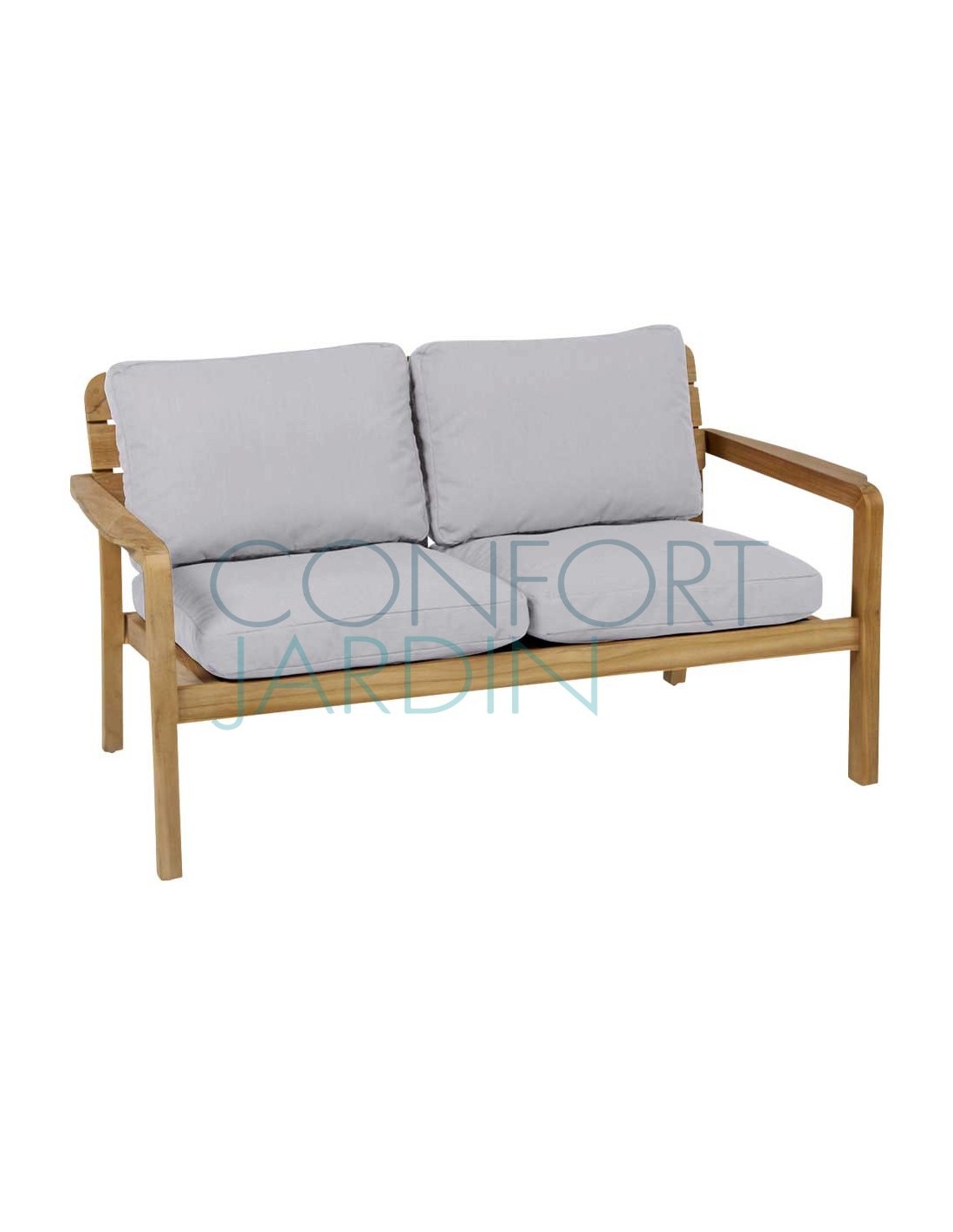 Banquette 2 places LODGE de Vlaemynck - structure teck massif TFT finition naturelle (non-huilé). Empilable. Coussins inclus - toile 100% acrylique teint masse. Plusieurs coloris.La banquette 2 places Lodge bénéficie d'une livraison gratuite.Délais de livraison : 4-5 semaines