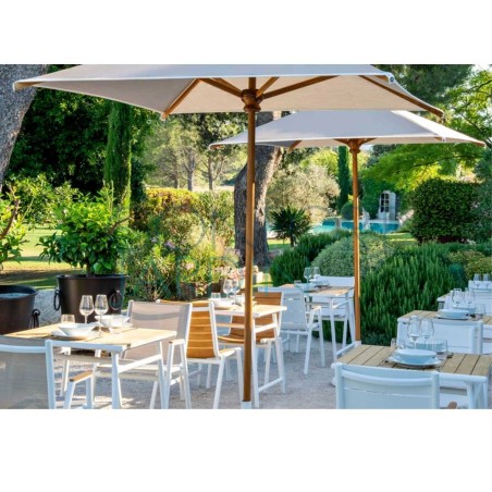 Table repas 135 x 135 cm avec structure tubulaire en aluminium blanc. Plateau cadre an aluminium et lattes en teck, finition naturelle. Hauteur 76 cm. Design Alberto Basaglia et Natalia Rota Nodari.La table repas Pilotis 135 x 135 cm bénéficie d'une livraison gratuite.Délais de livraison : 4-5 semaines