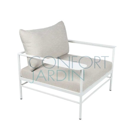 Ce fauteuil est doté d'une tablette (fixe) sur l'accoudoir qui permet de poser un verre, un livre...Avec ses accoudoirs enveloppants et son assise large et profonde, le fauteuil bas Rivage est un module indépendant. Sa structure aluminium tout en finesse lui confère une allure légère. Un design harmonieux qui permet à ce fauteuil de terrasse de s’adapter à toutes les envies ! Grâce à ses patins anti-vibrations, il gagne en stabilité. Il ne vous reste plus qu'à découvrir le nombre infini de combinaisons qui existe pour mettre en valeur votre extérieur professionnel.