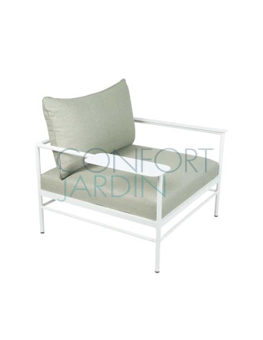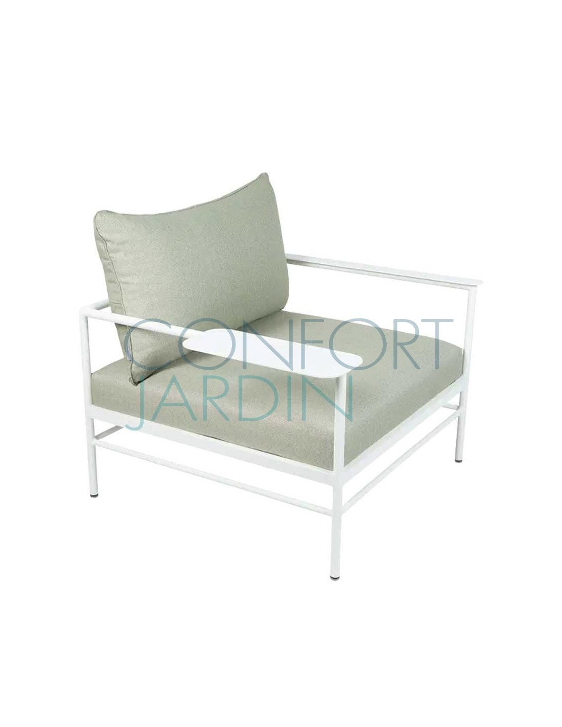 Ce fauteuil est doté d'une tablette (fixe) sur l'accoudoir qui permet de poser un verre, un livre...Avec ses accoudoirs enveloppants et son assise large et profonde, le fauteuil bas Rivage est un module indépendant. Sa structure aluminium tout en finesse lui confère une allure légère. Un design harmonieux qui permet à ce fauteuil de terrasse de s’adapter à toutes les envies ! Grâce à ses patins anti-vibrations, il gagne en stabilité. Il ne vous reste plus qu'à découvrir le nombre infini de combinaisons qui existe pour mettre en valeur votre extérieur professionnel.
