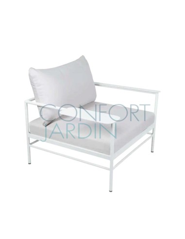 Ce fauteuil est doté d'une tablette (fixe) sur l'accoudoir qui permet de poser un verre, un livre...Avec ses accoudoirs enveloppants et son assise large et profonde, le fauteuil bas Rivage est un module indépendant. Sa structure aluminium tout en finesse lui confère une allure légère. Un design harmonieux qui permet à ce fauteuil de terrasse de s’adapter à toutes les envies ! Grâce à ses patins anti-vibrations, il gagne en stabilité. Il ne vous reste plus qu'à découvrir le nombre infini de combinaisons qui existe pour mettre en valeur votre extérieur professionnel.