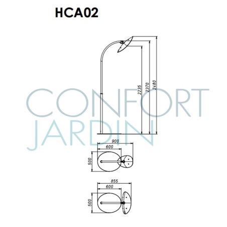 Lampadaire chauffant d'extérieur de petit format dans la série Hotdoor sont composé d'une base ovale lestée, d'un bras tubulaire cintré et d'une coque inclinable de forme ovale. L'ensemble en aluminium moulé finition de différents coloris. L'arc peut être choisi en fonction de votre aménagement et de la proximité des zones que vous souhaitez privilégier. L'arc long sera préféré pour des points de chauffe éloignés. L'angle de base de ce lampadaire chauffant vous permettra une marge de manoeuvre plus adaptée pour les zones à distance. Les têtes de lampe sont réglables, quel que soit l'arc choisi, grâce une rotule à la base de la lampe chauffante Phormalab.