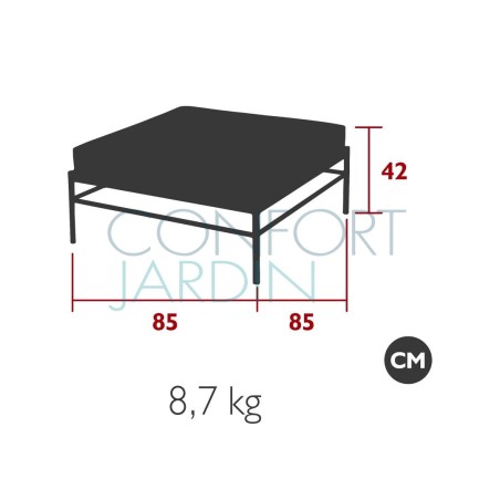 Cosy et raffinée, la collection Rivage permet de créer un salon d'extérieur ultra confortable. Ce mobilier mixe une fine structure en aluminium laqué à des coussins moelleux habillés d’un tissu haut de gamme.Avec son assise large et confortable, le pouf Rivage peut s’associer avec tous les modules de la collection. Sa structure aluminium tout en finesse lui confère une allure légère. Son design harmonieux lui permet de s’adapter à toutes les envies ! Grâce à ses patins anti-vibrations, il gagne en stabilité. Il ne vous reste plus qu'à découvrir le nombre infini de combinaisons qui existe pour mettre en valeur votre extérieur professionnel.