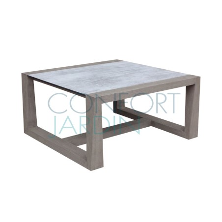 Table basse SKAAL en teck Duratek® et HPL finition béton ciré à associer idéalement à l'ensemble salon de jardin SKAAL club car les sections de teck Duratek® sont identiques.