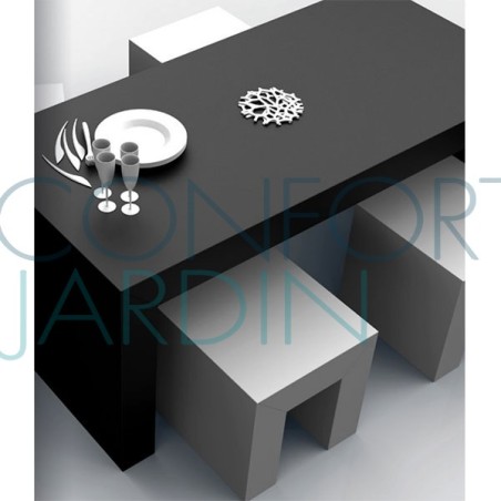 Une table repas familiale, rectangulaire 170 cm x 80 cm au design épuré et élégant. Elle fait une partie intégrante de la collection ARCHE, composée en plus d'une table basse 8 places et d'un tabouret. Utilisable aussi bien à l'intérieur que dans votre jardin ou sur la terrasse, et pouvant accueillir jusqu'à 6 personnes, elle est disponible en 2 couleurs: le blanc et le noir.