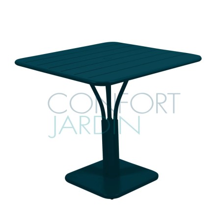 Guéridon LUXEMBOURG de la marque Fermob. En aluminium laqué. Pied central. Taille du plateau : 80 x 80 cm. Hauteur : 74 cm. Disponible en 24 coloris.